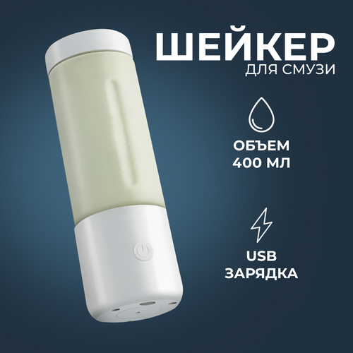 Миксер аккумуляторный для смузи / Шейкер / Блендер/ Зеленый