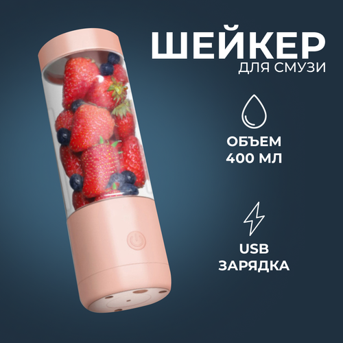 Миксер аккумуляторный для смузи / Шейкер / Блендер/ Розовый