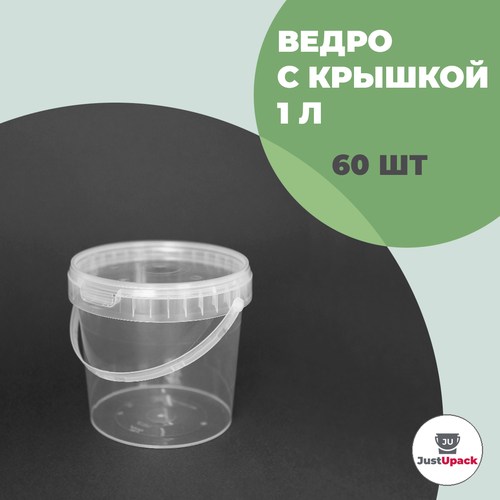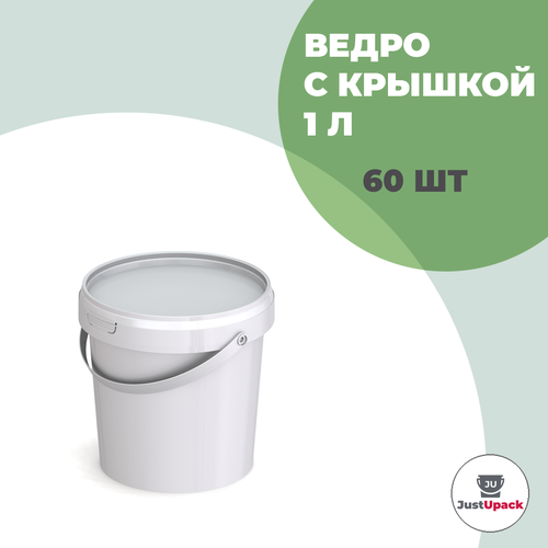 Пищевое пластиковое ведро с крышкой 1 л для дома и дачи, 60 шт