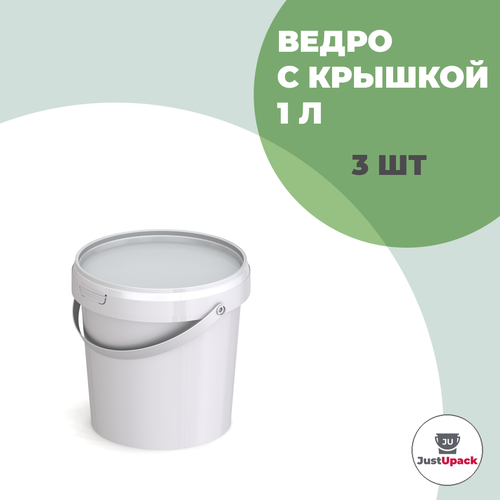 Пищевое пластиковое ведро с крышкой 1 л для дома и дачи, 3 шт