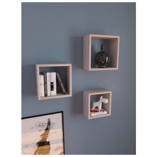 Полка, Комплект полок Кадама Настенная Прямая Квадро, 30/27/24 см, 3 шт.