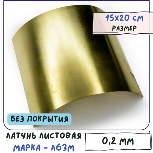 Латунь листовая 0.2 мм 15х20 см для Wire Wrap, без покрытия, Л63М