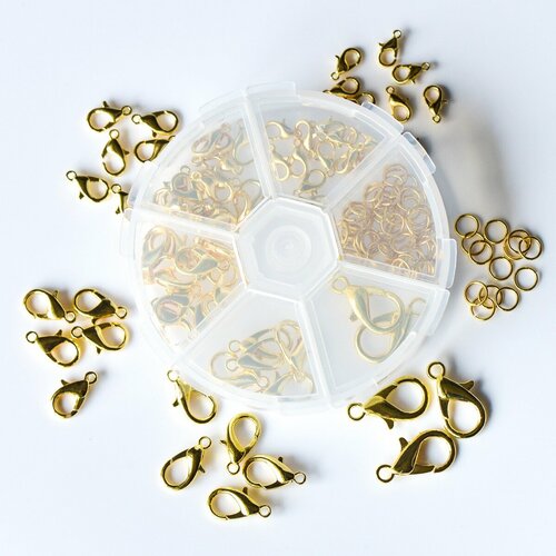 Набор фурнитуры для создания/ремонта застежек, цвет золото, в органайзере
