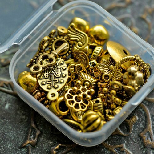 Набор Бусин, Шапочек и Подвесок в органайзере "Золотой микс" для создания сережек, браслетов / для детского творчества