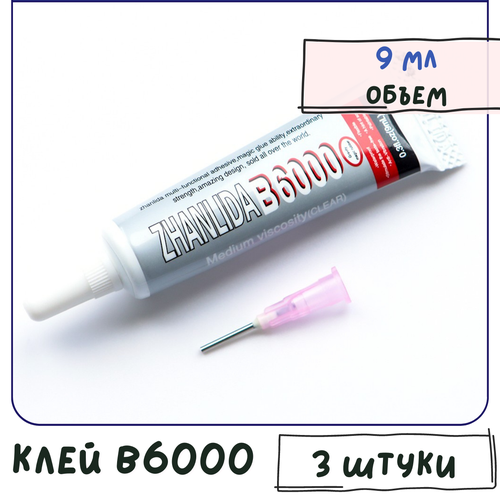 Клей универсальный ювелирный B6000 3 шт./ для страз / для украшений / для рукоделия, 9 мл