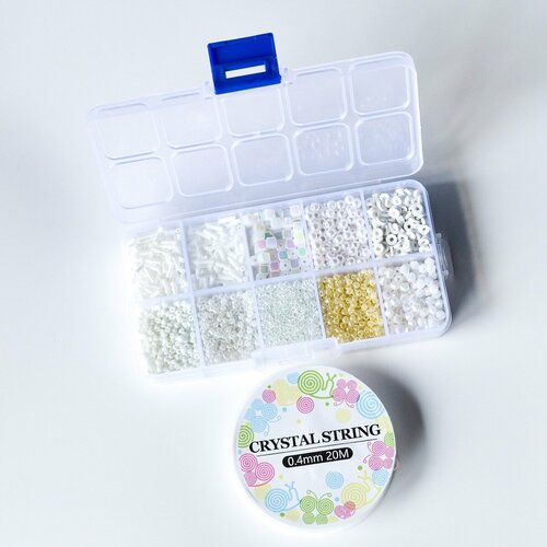 Набор бисера и бусин "Белый перламутр" для рукоделия/бисероплетения/детского творчества