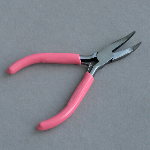 Тонкогубцы-утконосы без насечки, инструмент для бижутерии, размер 12 см, розовые ручки, карбоновая сталь