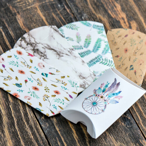 Коробка сборная картонная подарочная (10 шт.), размер 9.9x5.5x0.1 см, разные дизайны в упаковке
