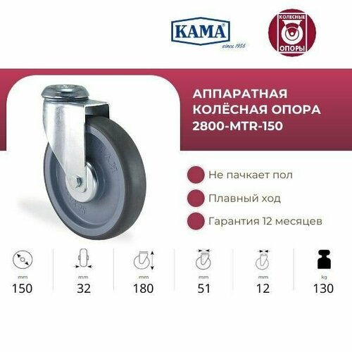 Колесо КАМА, 150x45x17-PUR. Диаметр 150 мм. Грузоподъемность 400 кг.