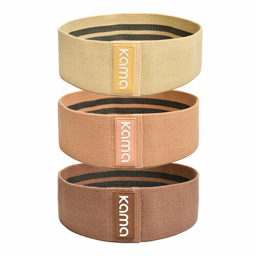 Комплект фитнес резинок Kama 3 шт, бежевый лайт, глубокий коричневый, светло-коричневый (10, 17, 23 кг)