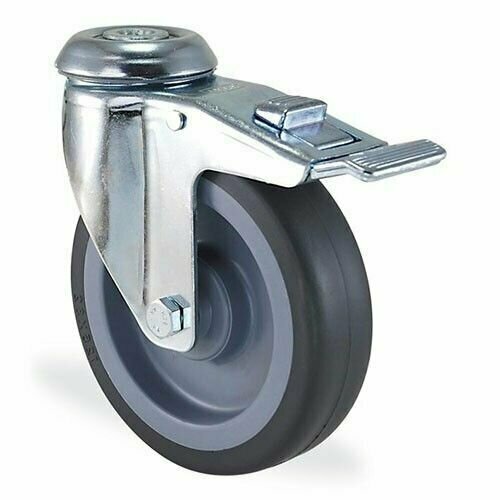 Колесная опора усиленная с тормозом, поворотная под болт 2800-MTB-125-F18, диаметр 125 мм, грузоподъёмность 110 кг.