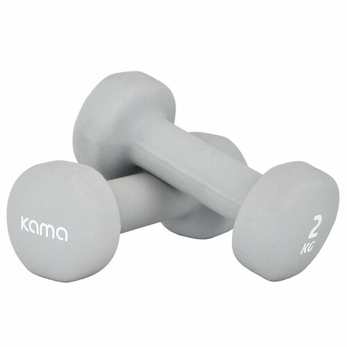 Гантели Kama, гексагональные, с неопреновым покрытием, 2 кг, серые, 2 шт