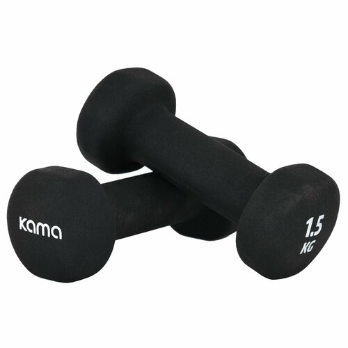 Гантели Kama, гексагональные, с неопреновым покрытием, 1,5 кг, черные, 2шт