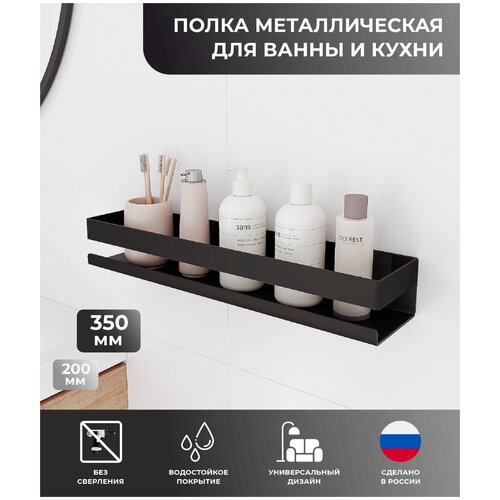 Полка для ванной и кухни металлическая навесная без сверления, полочка настенная черная на липучках лофт