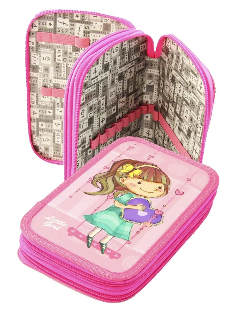 Пенал школьный Канцбург 2 отделения Девочка на качелях на молнии