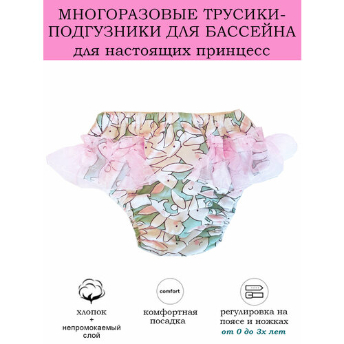 Многоразовые трусики-подгузники для плавания от 0 до 3х лет модель Зайчики с рюшами р. М