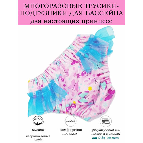 Многоразовые трусики-подгузники для плавания от 0 до 3х лет модель Бабочки с рюшами р. S