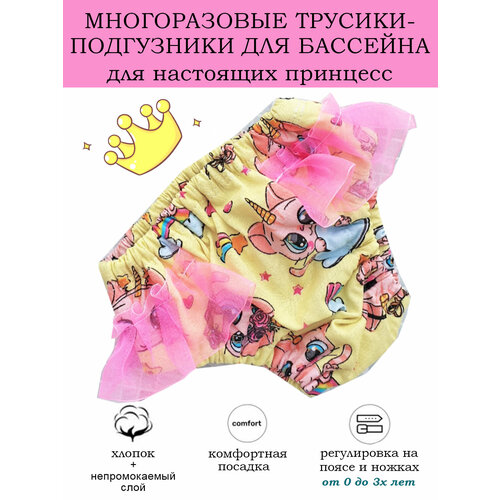 Многоразовые трусики-подгузники для плавания от 0 до 3х лет модель Котики с рюшами р. М