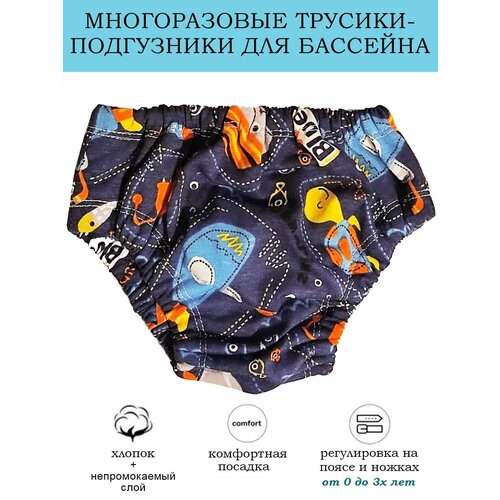 Многоразовые трусики-подгузники для плавания от 0 до 3х лет модель Морской мир р. S