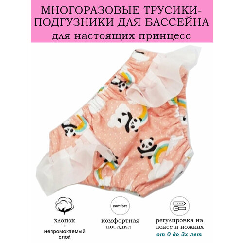 Многоразовые трусики-подгузники для плавания от 0 до 3х лет модель Панды с рюшами р. М