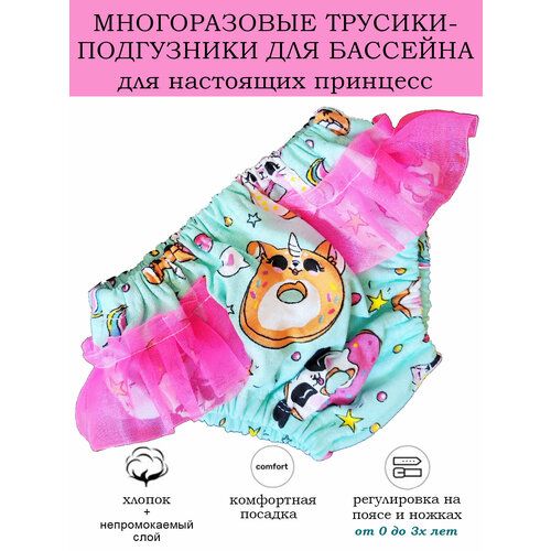 Многоразовые трусики-подгузники для плавания от 0 до 3х лет модель Пончики с рюшами р. S