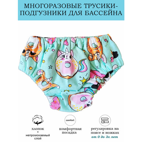 Многоразовые трусики-подгузники для плавания от 0 до 3х лет модель Котики р. S