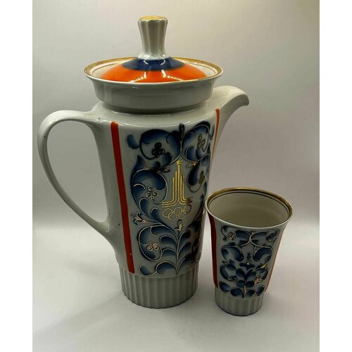 Сервиз, Фарфоровый Кувшин и чашка "Олимпиада" времён СССР! Клеймо! Винтаж!
