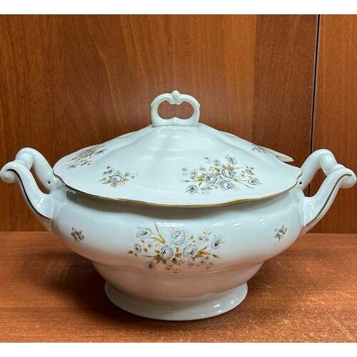 Фарфоровая Супница с Крышкой "Karolina" Польша Времён СССР Вес 2,3 кг Диаметр 32 см!