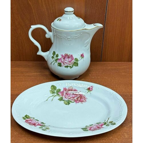 Сервиз Заварочный Чайник и Блюдо Фарфор! Позолота! "Karolina" Польша времён СССР