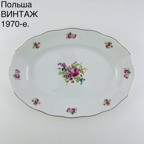 Винтажное большое блюдо "Живая красота". Фарфор Karolina. Польша, 1970-е.