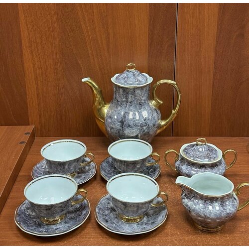 Чайный Сервиз 8 предметов Фарфор! Позолота! "Karolina" Польша Времён СССР!