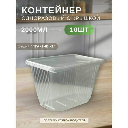Контейнеры одноразовые с крышкой "Каштан Практик XL профи" прозрачные 2000 мл, набор контейнеров 10 шт