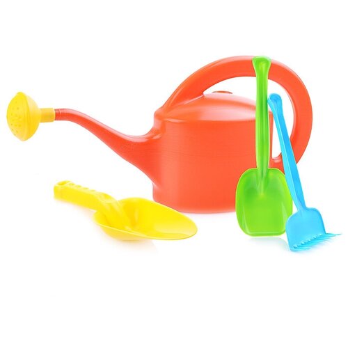 Песочный набор: лопатка 20см, грабли, лейка, 2 формочки микс