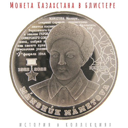 Казахстан 100 тенге 2022 Герой Советского Союза Маншук Маметова в коинкарте