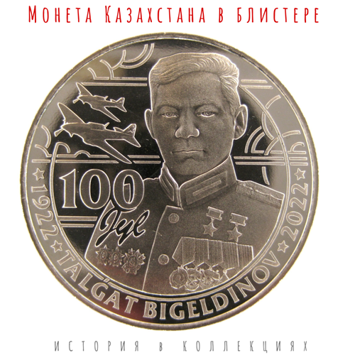 Казахстан 100 тенге 2022 Герой Советского Союза Талгат Бигельдинов в коинкарте