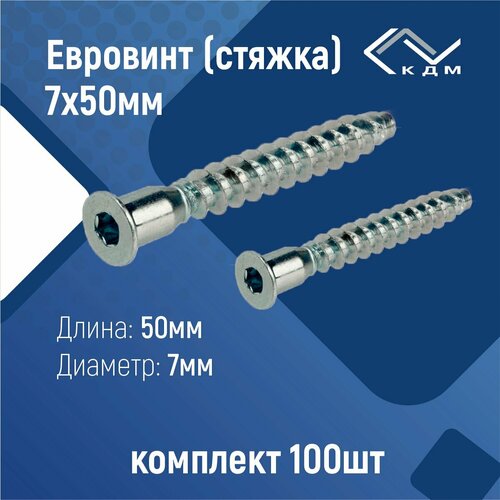Евровинты, конфирматы, стяжки шурупные мебельные оцинкованные 7х50 (под шестигранник), набор 100 шт.