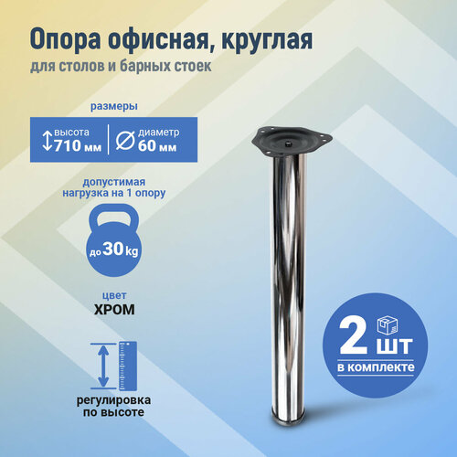 Опора ножка для стола регулируемая 60х710 мм, хром, комплект 2шт.