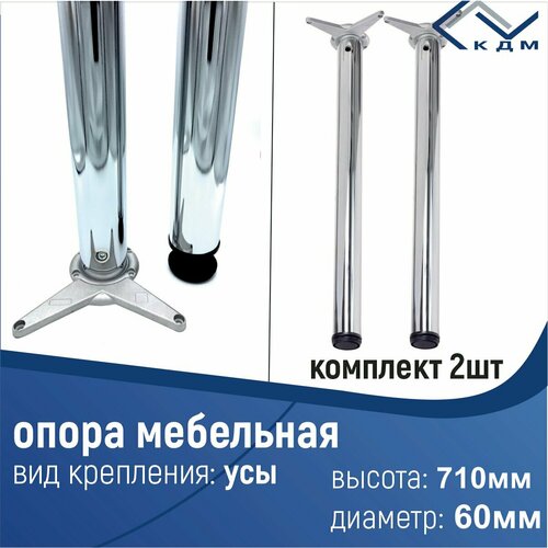 Опора ножка для стола регулируемая усы 60х710 мм, хром, комплект 2шт.