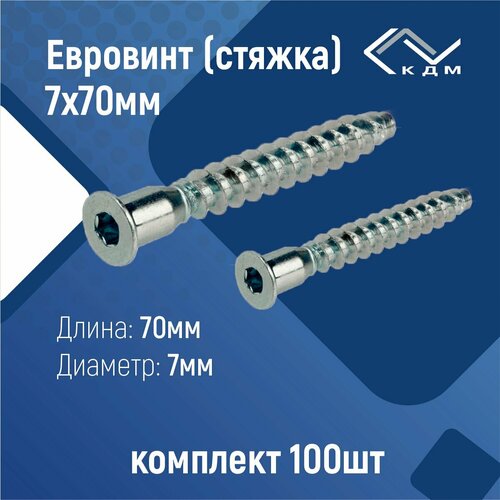Евровинты, конфирматы, стяжки шурупные мебельные оцинкованные 7х70 (под шестигранник), набор 100 шт.