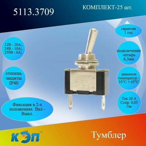 Тумблер без фиксации, под винт, 12 В / 20 А, 24 В / 10 А КЭП 5114.3709