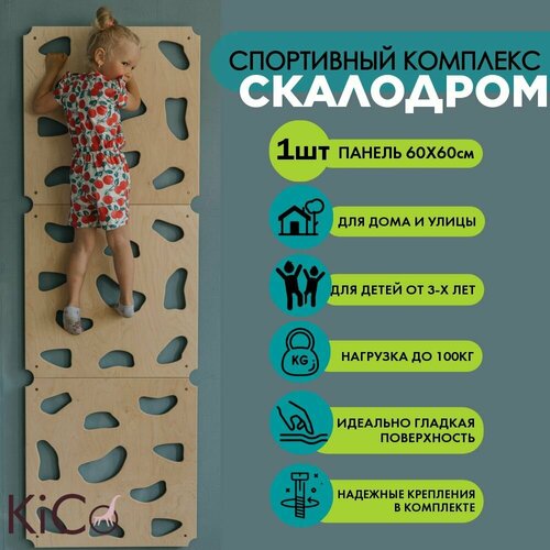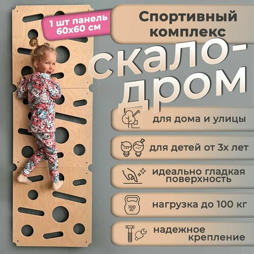 Спортивный комплекс для дома, Детский спорткомплекс, скалодром детский с отверстиями пристенный, панель 60х60, 1 шт