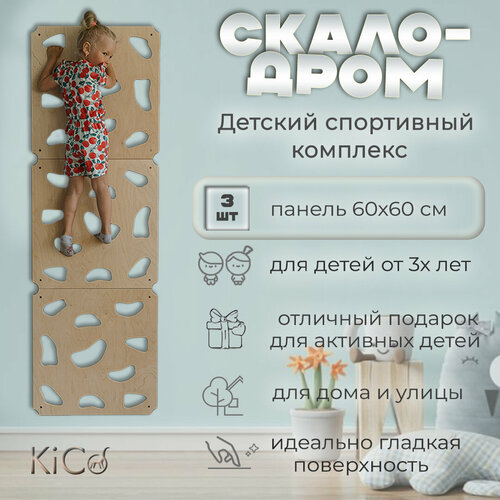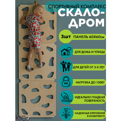 Спортивный комплекс для дома, Детский спорткомплекс, скалодром детский с отверстиями пристенный, панель 60х60, 3 шт