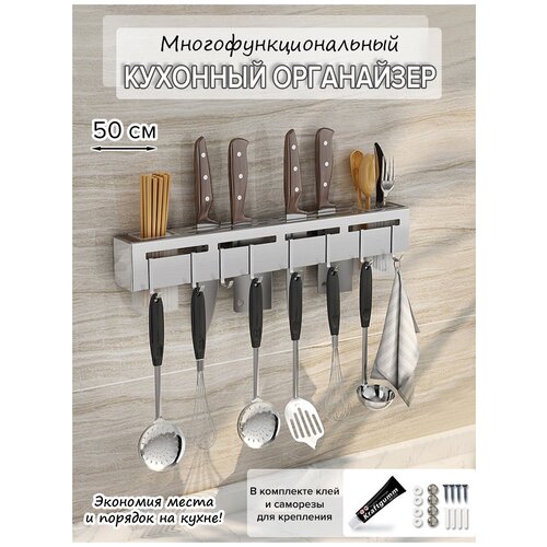 Держатель кухонный для столовых приборов подставка для ножей металлическая органайзер навесной 50 см