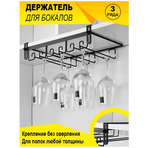 Держатель кухонный для бокалов подвесной, барный, для винных фужеров, 3 рядный бокалодержатель