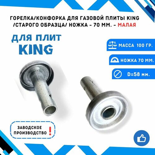 Конфорка-горелка для газовой плиты KING /старого образца/ с толстой трубкой длина трубки 70 мм. диаметр 58 мм. - конфоркамалая.