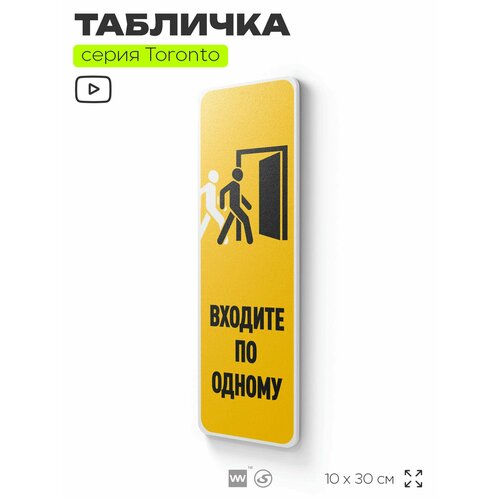 Табличка "Входите по одному", на дверь и стену, информационная, пластиковая с двусторонним скотчем, 10х30 см, Айдентика Технолоджи