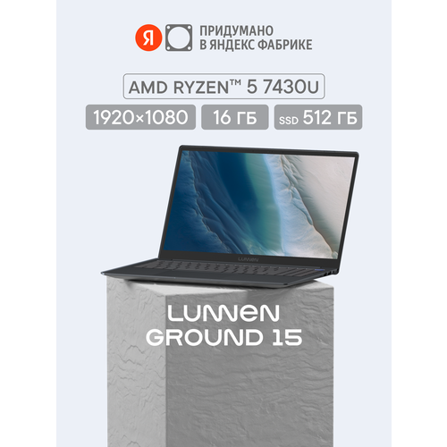 15.6" Ноутбук LUNNEN Ground 15 (2025), AMD Ryzen 5 7430U, RAM 16 ГБ, SSD 512 ГБ, IPS Full HD 1920x1080, Windows 11 Home, цвет Mid Gray, LL5FAWG03