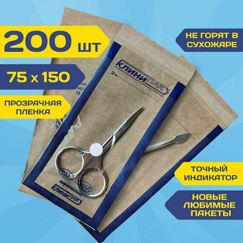 Крафт пакеты комби 75х150 мм набор 200 шт. крафт с пленкой бумажные пакеты для стерилизации инструментов клинипак