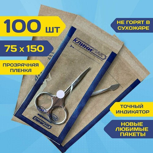 Крафт пакеты комби 75х150 мм набор 100 шт. крафт с пленкой бумажные пакеты для стерилизации инструментов клинипак