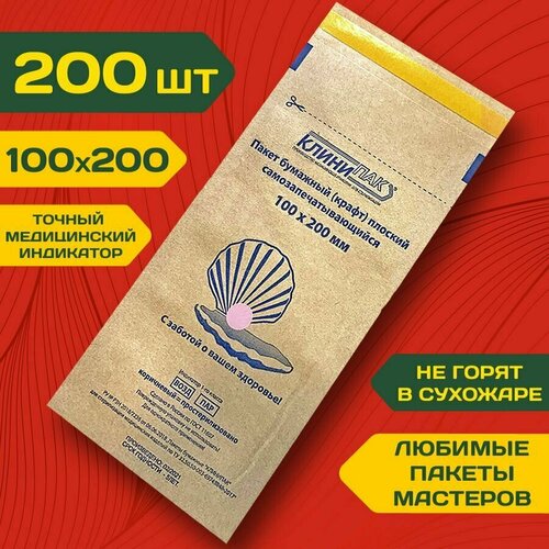 Крафт пакеты 100х200 мм набор 200 шт. бумажный пакет для стерилизации инструментов клинипак
